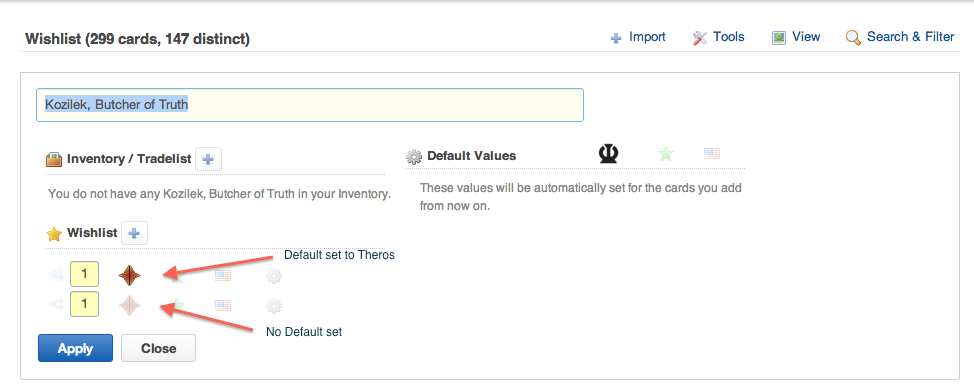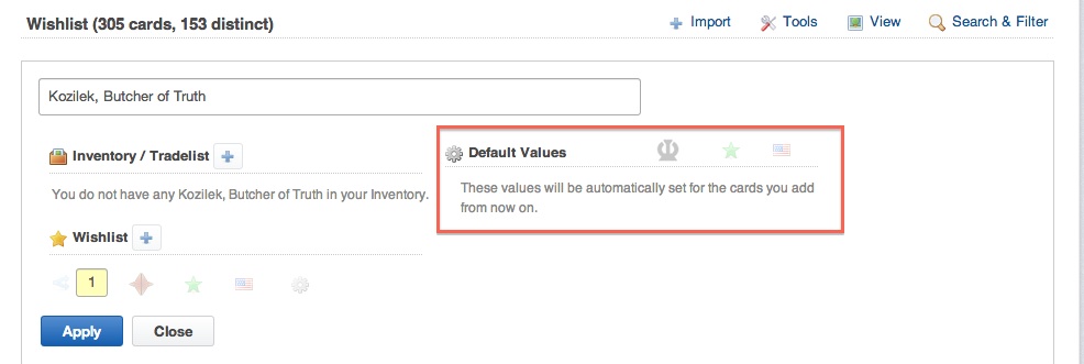 If a card was only printed once, when added to the inventory or wishlist, automatically select its edition.