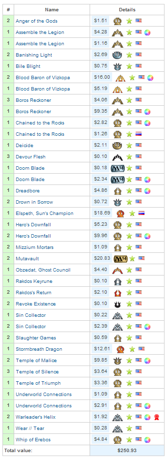 I would like to sell my standard deck, I do not expect anywhere near full value. I would honestly take two foil drs or 1 foil and a bit of change for it.