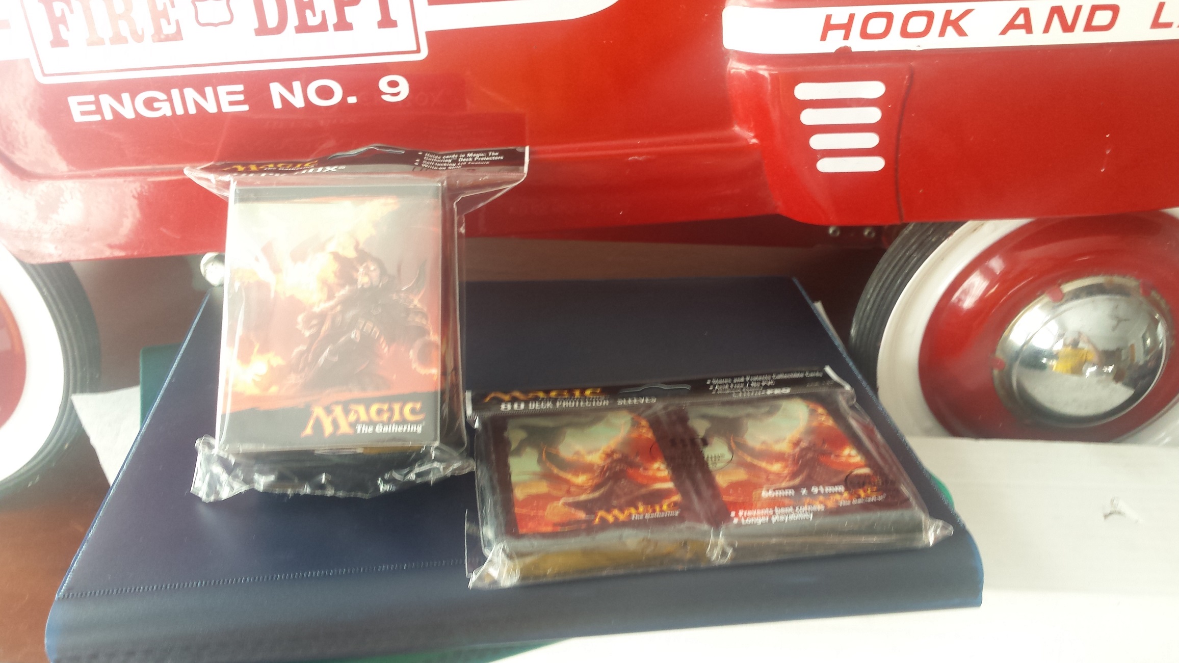 I have a brand new deck box and card sleeves and would be willing to trade them for cards.