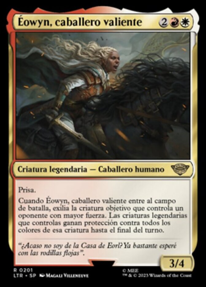 | Rules | Haste When Éowyn, Fearless Knight enters the battlefield, exile target creature an opponent controls with greater power. Legendary creatures you control gain protection from each of that creature's colors until end of turn. |