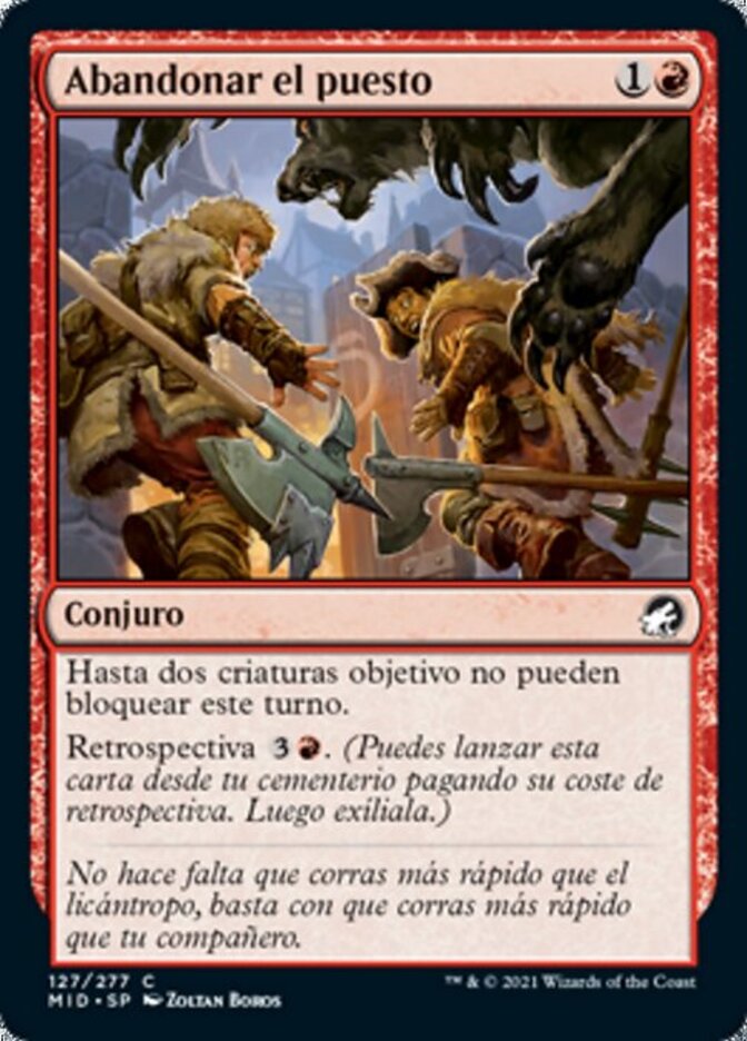 | Rules | Up to two target creatures can't block this turn. Flashback (You may cast this card from your graveyard for its flashback cost. Then exile it.) |