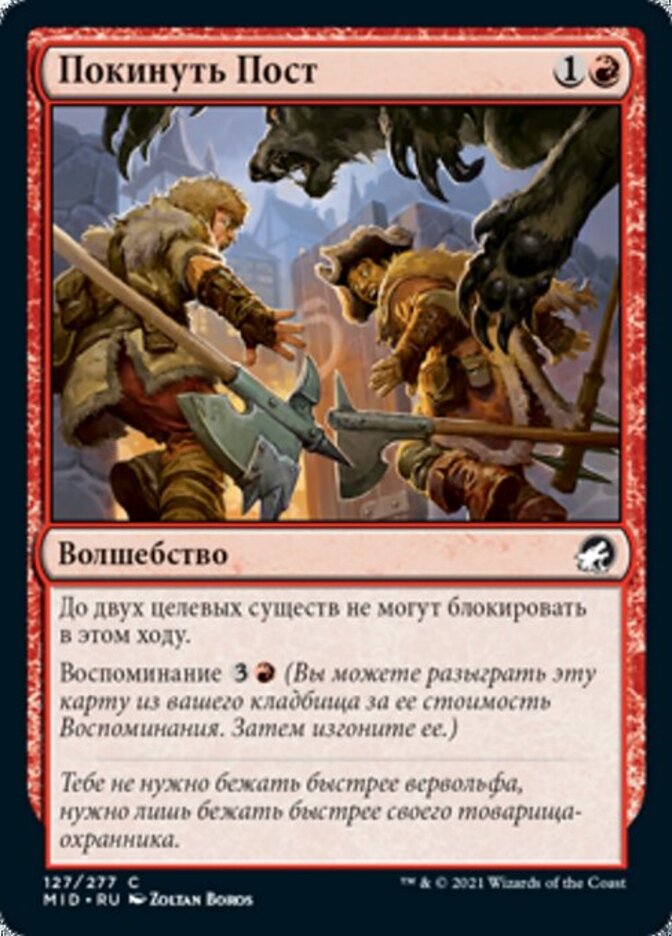 | Rules | Up to two target creatures can't block this turn. Flashback (You may cast this card from your graveyard for its flashback cost. Then exile it.) |