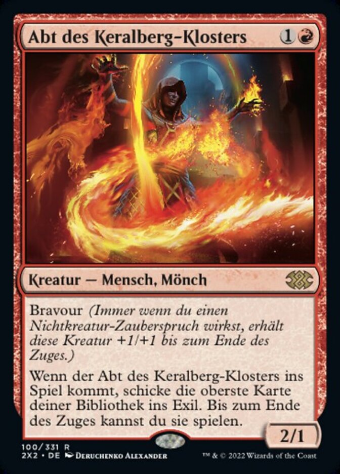 | Rules | Prowess (Whenever you cast a noncreature spell, this creature gets +1/+1 until end of turn.) When Abbot of Keral Keep enters the battlefield, exile the top card of your library. Until end of turn, you may play that card. |