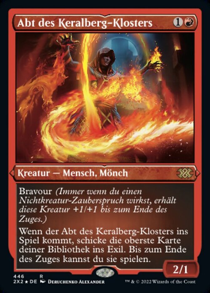 | Rules | Prowess (Whenever you cast a noncreature spell, this creature gets +1/+1 until end of turn.) When Abbot of Keral Keep enters the battlefield, exile the top card of your library. Until end of turn, you may play that card. |