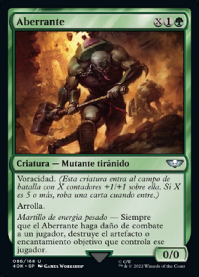 | Rules | Ravenous (This creature enters the battlefield with X +1/+1 counters on it. If X is 5 or more, draw a card when it enters.) Trample Heavy Power Hammer — Whenever Aberrant deals combat damage to a player, destroy target artifact or enchantment that player controls. |