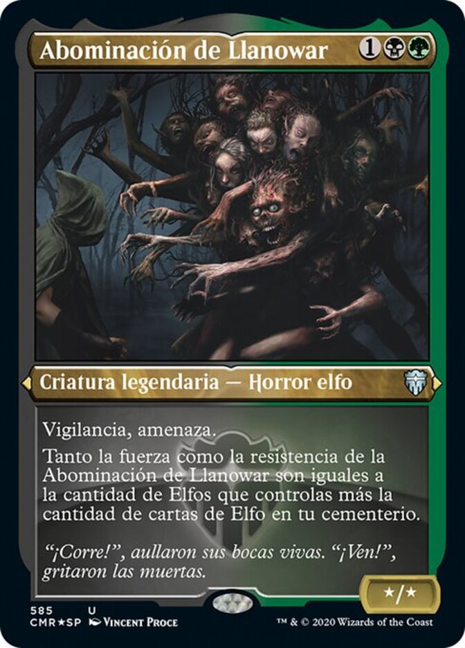 | Rules | Vigilance; menace (This creature can't be blocked except by two or more creatures.) Abomination of Llanowar's power and toughness are each equal to the number of Elves you control plus the number of Elf cards in your graveyard. |