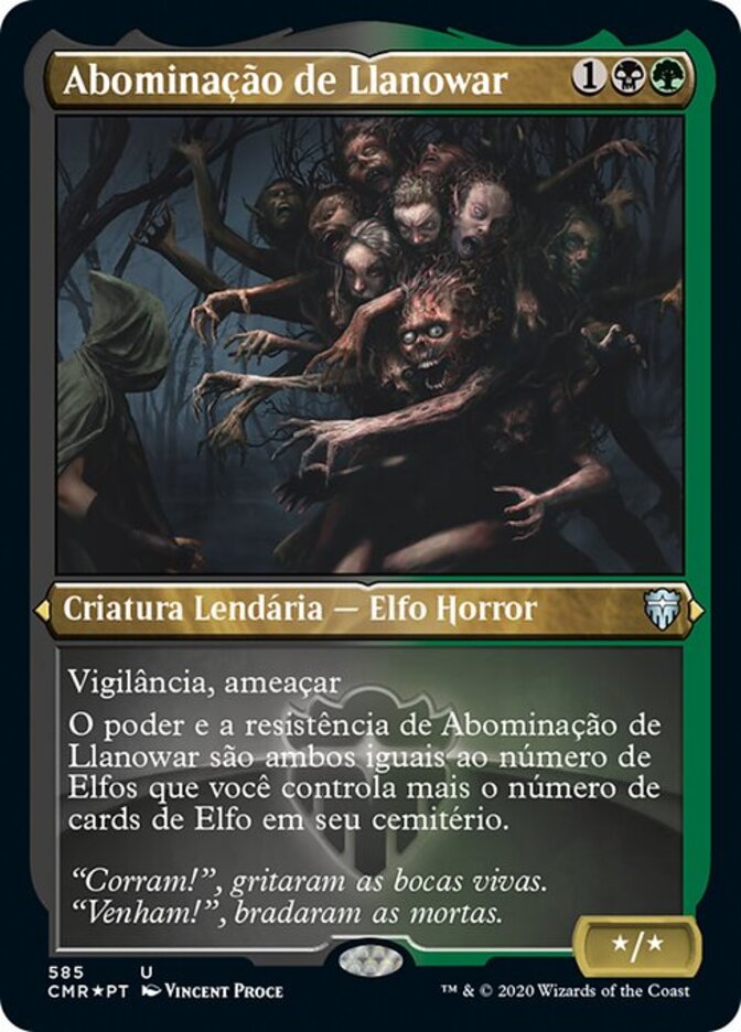 | Rules | Vigilance; menace (This creature can't be blocked except by two or more creatures.) Abomination of Llanowar's power and toughness are each equal to the number of Elves you control plus the number of Elf cards in your graveyard. |