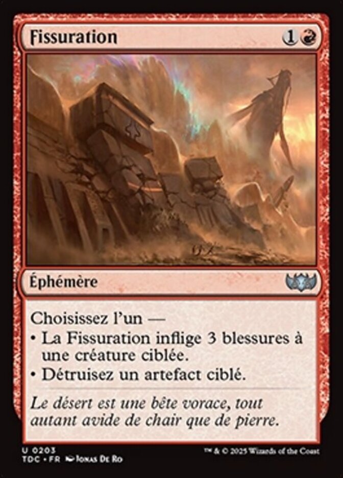 | Rules | Choose one — • Abrade deals 3 damage to target creature. • Destroy target artifact. |