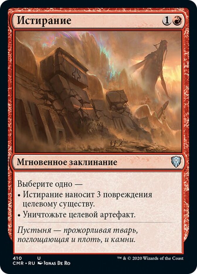 | Rules | Choose one — • Abrade deals 3 damage to target creature. • Destroy target artifact. |