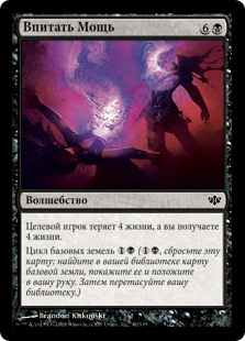 | Rules | Target player loses 4 life and you gain 4 life. Basic landcycling (, Discard this card: Search your library for a basic land card, reveal it, put it into your hand, then shuffle.) |