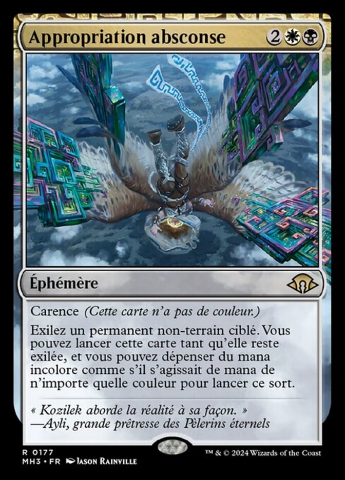 | Rules | Devoid (This card has no color.) Exile target nonland permanent. You may cast that card for as long as it remains exiled, and you may spend colorless mana as though it were mana of any color to cast that spell. |