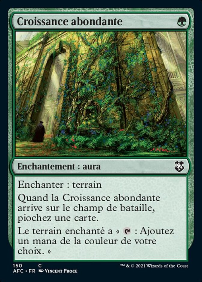 | Rules | Enchant land When Abundant Growth enters the battlefield, draw a card. Enchanted land has ": Add one mana of any color." |