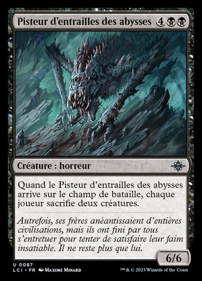 | Rules | When Abyssal Gorestalker enters the battlefield, each player sacrifices two creatures. |