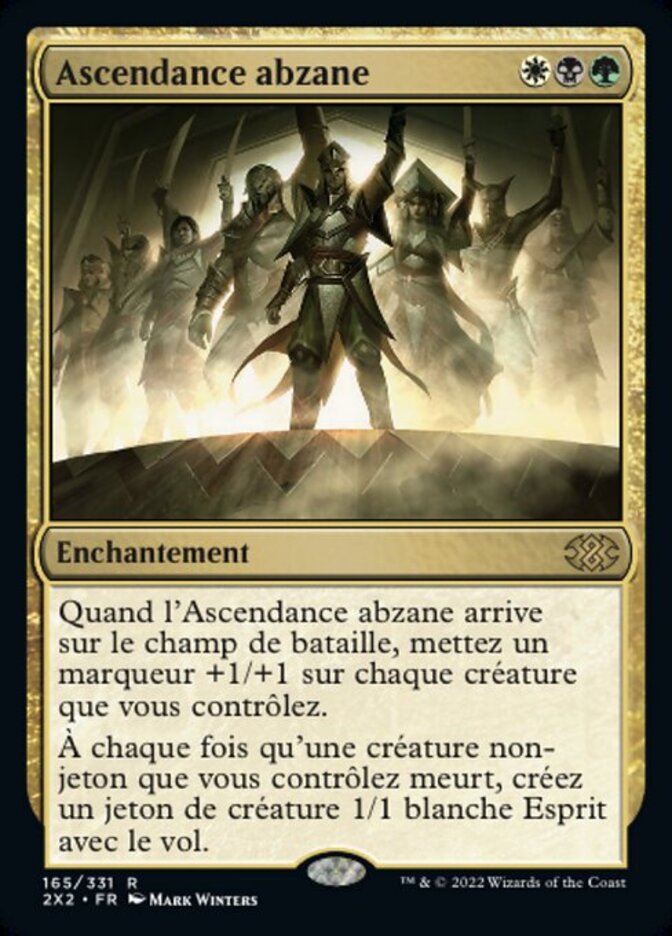 | Rules | When Abzan Ascendancy enters the battlefield, put a +1/+1 counter on each creature you control. Whenever a nontoken creature you control dies, create a 1/1 white Spirit creature token with flying. |
