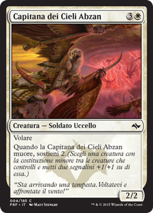 | Rules | Flying When Abzan Skycaptain dies, bolster 2. (Choose a creature with the least toughness among creatures you control and put two +1/+1 counters on it.) |