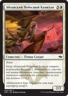 | Rules | Flying When Abzan Skycaptain dies, bolster 2. (Choose a creature with the least toughness among creatures you control and put two +1/+1 counters on it.) |