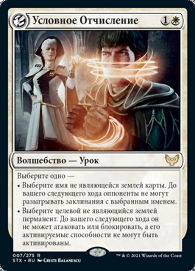 | Rules | Choose one — • Choose a nonland card name. Opponents can't cast spells with the chosen name until your next turn. • Choose target nonland permanent. Until your next turn, it can't attack or block, and its activated abilities can't be activated. |