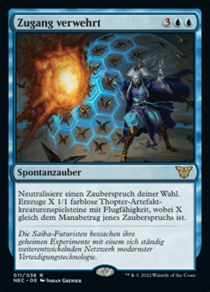 | Rules | Counter target spell. Create X 1/1 colorless Thopter artifact creature tokens with flying, where X is that spell's mana value. |