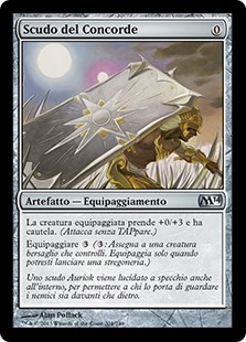 | Rules | Equipped creature gets +0/+3 and has vigilance. (Attacking doesn't cause it to tap.) Equip (: Attach to target creature you control. Equip only as a sorcery.) |