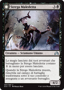 | Rules | Spells your opponents cast that target Accursed Witch cost less to cast. When Accursed Witch dies, return it to the battlefield transformed under your control attached to target opponent. // Enchant player Spells you cast that target enchanted player cost less to cast. At the beginning of enchanted player's upkeep, that player loses 1 life and you gain 1 life. |
