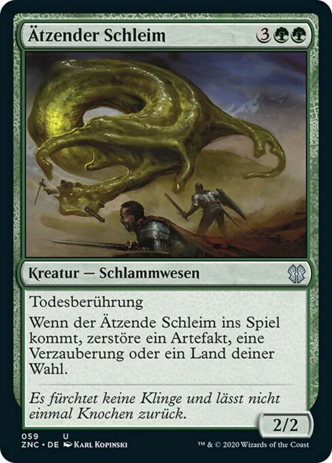 | Rules | Deathtouch (Any amount of damage this deals to a creature is enough to destroy it.) When Acidic Slime enters the battlefield, destroy target artifact, enchantment, or land. |