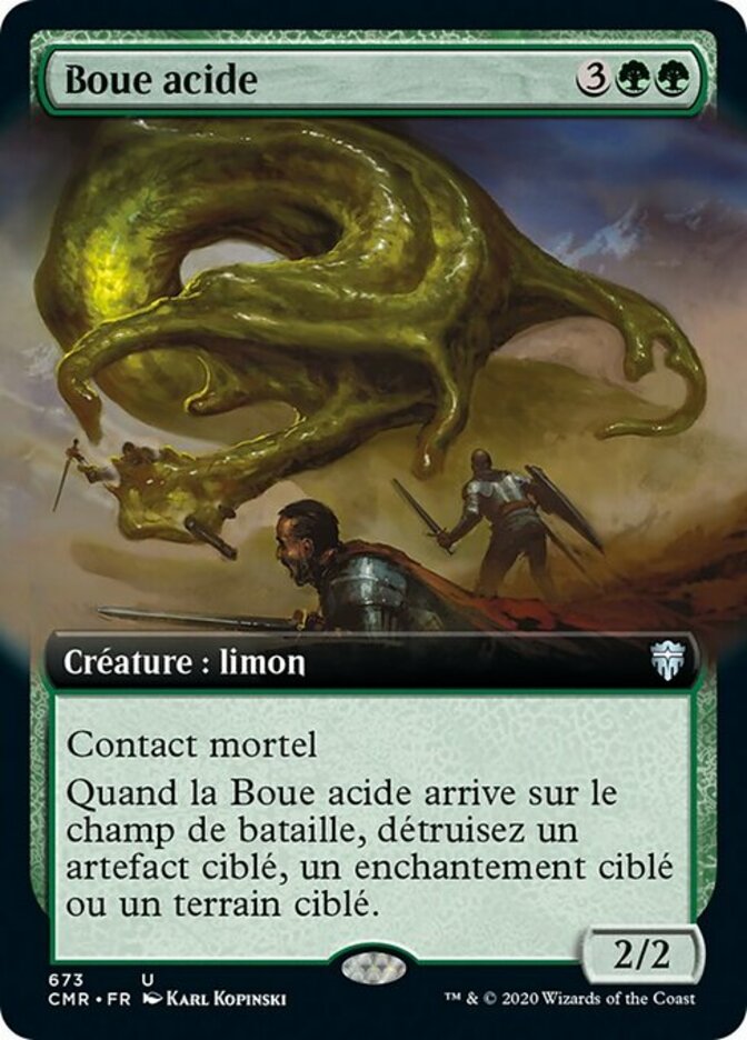 | Rules | Deathtouch (Any amount of damage this deals to a creature is enough to destroy it.) When Acidic Slime enters the battlefield, destroy target artifact, enchantment, or land. |