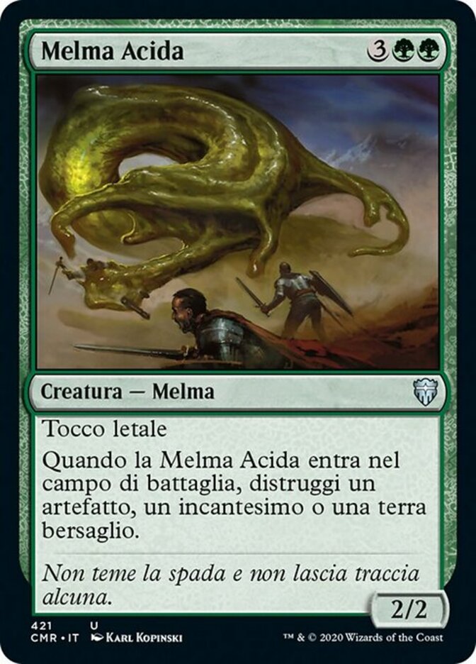 | Rules | Deathtouch (Any amount of damage this deals to a creature is enough to destroy it.) When Acidic Slime enters the battlefield, destroy target artifact, enchantment, or land. |