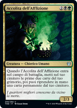 | Rules | When Acolyte of Affliction enters the battlefield, mill two cards, then you may return a permanent card from your graveyard to your hand. |