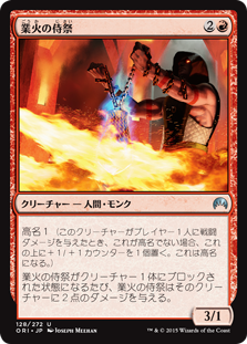 | Rules | Renown 1 (When this creature deals combat damage to a player, if it isn't renowned, put a +1/+1 counter on it and it becomes renowned.) Whenever Acolyte of the Inferno becomes blocked by a creature, it deals 2 damage to that creature. |