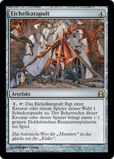 | Rules | , : Acorn Catapult deals 1 damage to any target. That permanent's controller or that player creates a 1/1 green Squirrel creature token. |