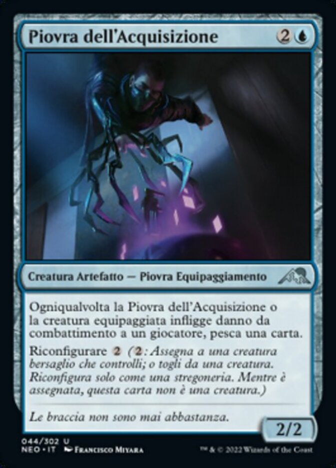 | Rules | Whenever Acquisition Octopus or equipped creature deals combat damage to a player, draw a card. Reconfigure (: Attach to target creature you control; or unattach from a creature. Reconfigure only as a sorcery. While attached, this isn't a creature.) |