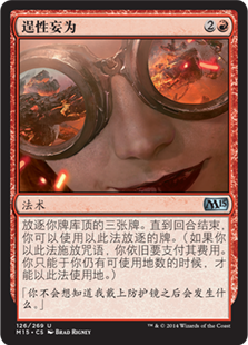 | Rules | Exile the top three cards of your library. Until end of turn, you may play cards exiled this way. (If you cast a spell this way, you still pay its costs. You can play a land this way only if you have an available land play remaining.) |