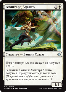 | Rules | As long as Adanto Vanguard is attacking, it gets +2/+0. Pay 4 life: Adanto Vanguard gains indestructible until end of turn. (Damage and effects that say "destroy" don't destroy it.) |