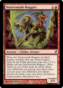 | Rules | When Adder-Staff Boggart enters the battlefield, clash with an opponent. If you win, put a +1/+1 counter on Adder-Staff Boggart. (Each clashing player reveals the top card of their library, then puts that card on the top or bottom. A player wins if their card had a higher mana value.) |