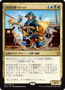 | Rules | Other Pirates you control get +1/+1. At the beginning of your end step, gain control of target nonland permanent controlled by a player who was dealt combat damage by three or more Pirates this turn. |