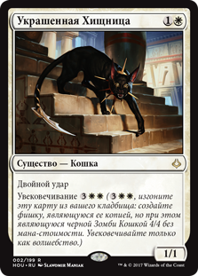 | Rules | Double strike Eternalize (, Exile this card from your graveyard: Create a token that's a copy of it, except it's a 4/4 black Zombie Cat with no mana cost. Eternalize only as a sorcery.) |