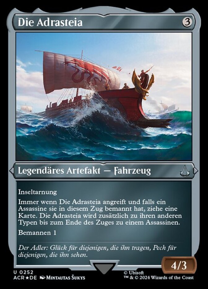| Rules | Islandwalk (This creature can't be blocked as long as defending player controls an Island.) Whenever Adrestia attacks, if an Assassin crewed it this turn, draw a card. Adrestia becomes an Assassin in addition to its other types until end of turn. Crew 1 |