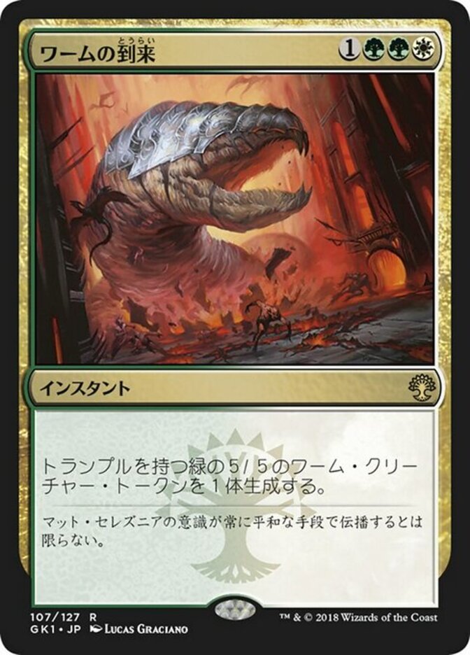 | Rules | Create a 5/5 green Wurm creature token with trample. |
