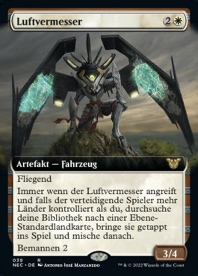 | Rules | Flying Whenever Aerial Surveyor attacks, if defending player controls more lands than you, search your library for a basic Plains card, put it onto the battlefield tapped, then shuffle. Crew 2 |