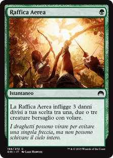 | Rules | Aerial Volley deals 3 damage divided as you choose among one, two, or three target creatures with flying. |