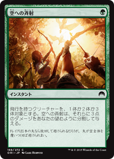 | Rules | Aerial Volley deals 3 damage divided as you choose among one, two, or three target creatures with flying. |