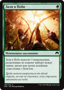 | Rules | Aerial Volley deals 3 damage divided as you choose among one, two, or three target creatures with flying. |