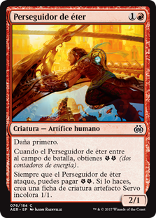| Rules | First strike When Aether Chaser enters the battlefield, you get (two energy counters). Whenever Aether Chaser attacks, you may pay . If you do, create a 1/1 colorless Servo artifact creature token. |