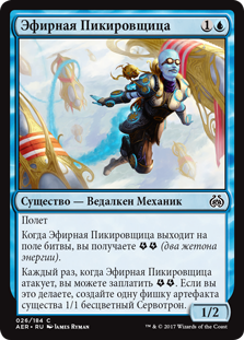 | Rules | Flying When Aether Swooper enters the battlefield, you get (two energy counters). Whenever Aether Swooper attacks, you may pay . If you do, create a 1/1 colorless Servo artifact creature token. |