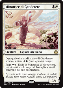 | Rules | Whenever Aethergeode Miner attacks, you get (two energy counters). Pay : Exile Aethergeode Miner, then return it to the battlefield under its owner's control. |