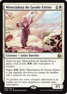 | Rules | Whenever Aethergeode Miner attacks, you get (two energy counters). Pay : Exile Aethergeode Miner, then return it to the battlefield under its owner's control. |