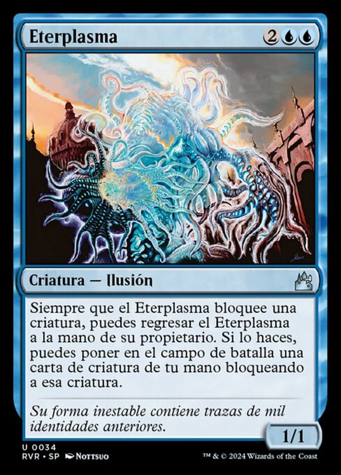 | Rules | Whenever Aetherplasm blocks a creature, you may return Aetherplasm to its owner's hand. If you do, you may put a creature card from your hand onto the battlefield blocking that creature. |