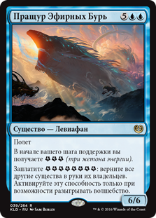| Rules | Flying At the beginning of your upkeep, you get (three energy counters). Pay : Return all other creatures to their owners' hands. Activate only as a sorcery. |