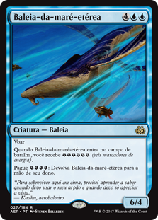 | Rules | Flying When Aethertide Whale enters the battlefield, you get (six energy counters). Pay : Return Aethertide Whale to its owner's hand. |