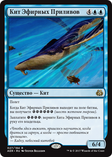 | Rules | Flying When Aethertide Whale enters the battlefield, you get (six energy counters). Pay : Return Aethertide Whale to its owner's hand. |